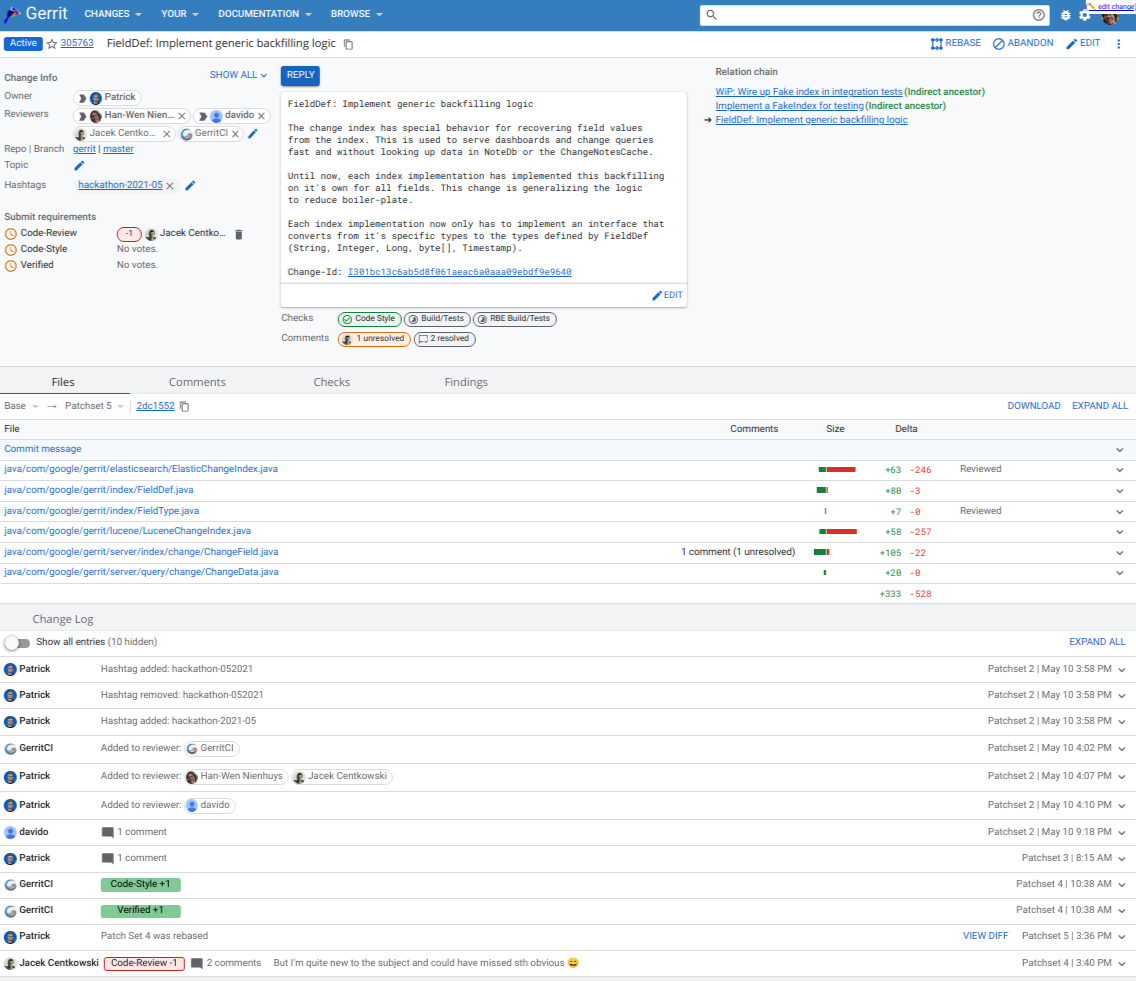 Reviewing changes is an important task and the Gerrit Web UI provides many functionalities to make the review process comfortable and efficient.